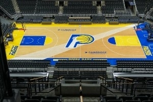 NBA直播11月15日讯 步行者官方晒出了球队新赛季城市版的球场地板涂装。