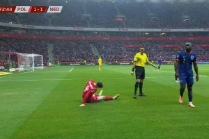NBA直播11月15日讯 波兰vs荷兰第74分钟,莱万在争抢时受伤,直接坐下了,但暂时没有换人。