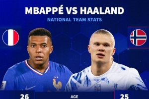 NBA直播11月15日讯 德国转会市场社媒晒出图片,对比了梅西、C罗、姆巴佩、哈兰德的国家队数据。