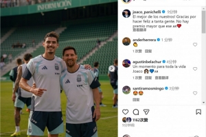 NBA直播11月15日讯 阿根廷新晋国脚帕尼切利更新社媒动态,晒出与梅西的合照。
