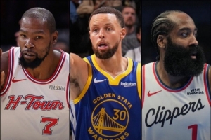 NBA直播11月16日讯 火箭随队记者晒出一项数据显示,杜兰特、库里、哈登目前都场均25+且真实命中率60%+,具体如下: