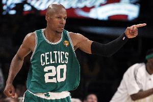 NBA直播11月17日讯 雷阿伦昨天在凯尔特人主场观看了他大学母校康涅狄格大学对阵杨百翰大学的NCAA比赛。