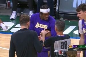NBA直播11月17日讯 昨天湖人战胜雄鹿的赛后,双方球员以及裁判针对比赛用球展开了一段拉扯。