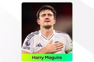 英超官方社媒晒出马奎尔的精彩表现集锦,宣布他当选第8轮比赛最佳球员。
