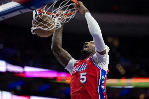 NBA直播11月18日讯 NBA常规赛,76人110-108险胜快船。德拉蒙德此役继续稳定发挥,内线终结和保护篮板都做得不错,出战38分钟,8中5,三分2中1,罚球4中3砍下14分18篮板(5前场篮板)1抢断,正负值+2。