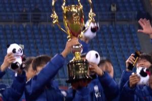 NBA直播11月18日讯 熊猫杯颁奖典礼,2胜1负的韩国队捧起冠军奖杯,中国队1胜1平1负收获亚军银盘。