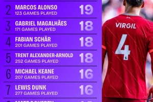 NBA直播11月19日讯 利物浦后卫范戴克有着不错的得分能力,头球轰炸是他的强项。德国转会市场盘点了2017-18赛季以来英超后卫进球情况,范戴克以21球居首。