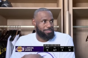 NBA直播11月19日讯 今日,湖人140-125主场击败爵士,迎来三连胜。赛后,湖人前锋詹姆斯接受了采访。