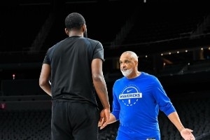 NBA直播10月23日讯 独行侠助教菲尔-汉迪更新社媒,晒出了训练时指导球员的照片。