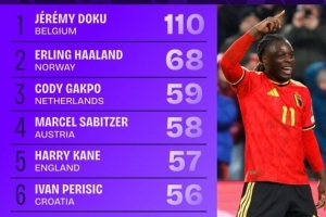 NBA直播11月20日讯 本届世欧预小组赛已经告一段落,squakwa也统计了本届赛事在对方禁区内触球情况,曼城边锋多库断崖领跑。
