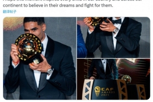 NBA直播11月20日讯 阿什拉夫当选2025年非洲足球先生,他在社交媒体上晒出领奖照片,发表获奖感言。