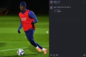 NBA直播11月21日讯 巴黎官方社媒晒照,努诺·门德斯参加训练。