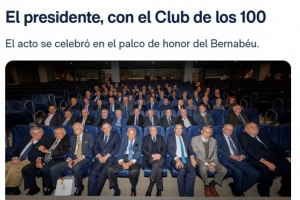 NBA直播11月22日讯 皇马官网报道,俱乐部主席弗洛伦蒂诺在伯纳乌球场荣誉包厢出席传统“百人俱乐部”午宴,设宴招待俱乐部最资深的会员们。