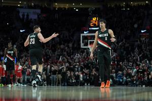 赛后队记Sean Highkin发推分析了球队杯赛的晋级形势,他写道:“今晚过后,虽然开拓者的小组赛净胜分还是负数,但他们已经将命运掌握在自己手中了,他们和掘金的战绩都是2-1,但相互交手占优,下周三(北京时间周四)若能够击败马刺,就能晋级淘汰赛。”