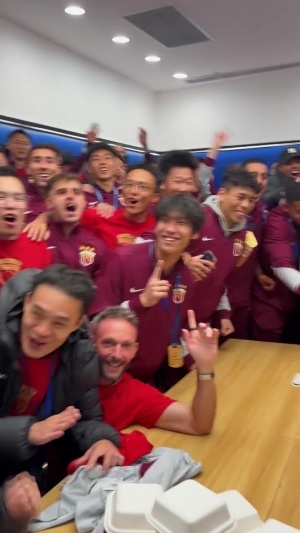 NBA直播11月22日讯 海港记者刘闻超发布视频,在夺得2025赛季中超冠军后,上海海港全队在更衣室欢庆夺冠。