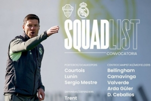 NBA直播11月22日讯 本轮西甲皇马将迎战埃尔切,球队官方也公布了本场比赛大名单,米利唐、阿拉巴缺战,具体如下: