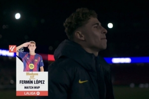 NBA直播11月23日讯 巴萨在本轮西甲4-0完胜毕巴,费尔明在赛后被西甲官方评为全场最佳。