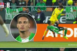 NBA直播11月24日讯 贝蒂斯本轮1-1战平赫罗纳,第90分钟,安东尼一个倒勾动作踢到对手头部,裁判看VAR后将他直红罚下。