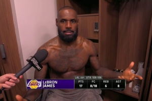 NBA直播11月24日讯 今日,湖人108-106客场击败爵士,迎来四连胜。赛后,湖人前锋詹姆斯接受了采访。