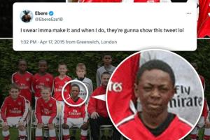 NBA直播11月24日讯 阿森纳4-1完胜热刺,笑傲北伦敦德比,埃泽成为了本场比赛的帽子戏法英雄。赛后,埃泽早年的一条社媒动态被各大媒体和球迷再度挖出。