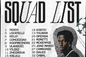 NBA直播11月24日讯 北京时间11月26日本周三凌晨4点,欧冠联赛阶段第5轮,尤文客战博德闪耀,尤文公布了此役大名单。