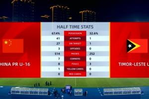 NBA直播11月24日讯 U17亚洲杯预选赛第二轮,U16国足14-0战胜东帝汶U16,全场比赛U16国足狂轰41脚射门打进14球,东帝汶U16全场1脚射门。