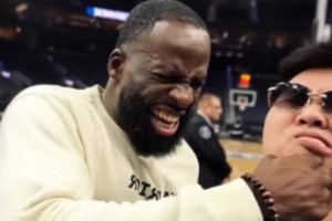 NBA直播11月25日讯 NBA常规赛,勇士134-117战胜爵士。比赛中,中国歌手揽佬SKAIISYOURGOD现身场边,给勇士助阵。