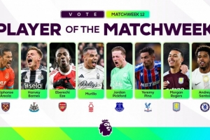 NBA直播11月25日讯 英超第12轮联赛已经完赛,英超官方也列出了本轮最佳球员的8人候选名单: