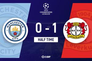 NBA直播11月26日讯 北京时间11月26日凌晨4时,欧冠联赛阶段第5轮,曼城坐镇伊蒂哈德球场迎战勒沃库森。上半场,格里马尔多首开纪录。曼城半场0-1落后勒沃库森。