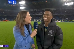 NBA直播11月26日讯 欧冠联赛阶段第5轮,切尔西3-0完胜巴萨。英媒sportbible报道,亚马逊记者亚历克斯·艾尔乔因用英葡双语对埃斯特旺进行赛后采访而走红,获赞“赛季最佳采访”。