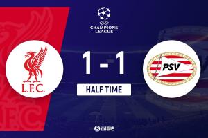NBA直播11月27日讯 北京时间11月27日凌晨4:00,欧冠联赛阶段第5轮,利物浦坐镇安菲尔德球场迎战埃因霍温。上半场范戴克手球送点,佩里西奇点射破门,索博斯洛伊补射扳平,利物浦暂1-1埃因霍温。