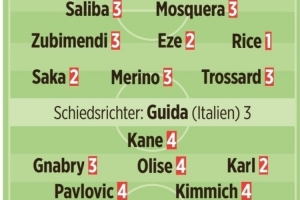 NBA直播11月27日讯 拜仁在本轮欧冠客场1-3不敌阿森纳,《图片报》在赛后为两队将帅评分。