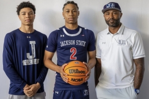 NBA直播11月28日讯 SLAM University报道,詹姆斯前队友莫·威廉姆斯目前是NCAA杰克逊州立大学男篮主教练,而他的儿子梅森·威廉姆斯(图中)刚刚承诺加盟,明年高中毕业后,他将加盟杰克逊州立大学,为父亲效力。
