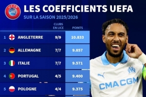 NBA直播11月29日讯 德国转会市场列出了本赛季欧战积分排名,英超、德甲前两位,意甲升至第三位。