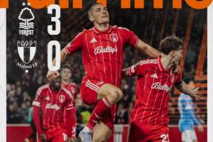 NBA直播11月29日讯 欧联杯赛场,诺丁汉森林3-0大胜马尔默。森林近3场欧联1球不失拿下7分,连克波尔图和马尔默,战平格拉茨风暴。