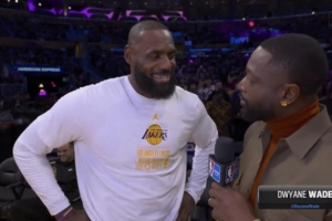 NBA直播11月29日讯 今日,湖人在NBA杯赛中129-119主场击败独行侠。赛前,湖人前锋詹姆斯接受了NBA名宿韦德的采访。