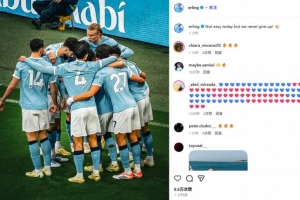哈兰德也在赛后通过社媒晒出全队相拥庆祝照,并配文:“今天并不容易,但我们从不放弃!”