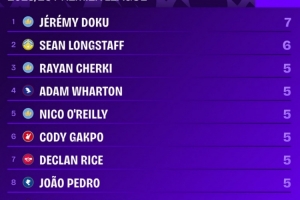 NBA直播11月30日讯 Squawka统计了球员本赛季英超创造重大机会的次数,并列出榜单,多库7次最多。