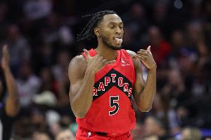 上半场比赛,猛龙后卫奎克利发挥出色,进攻端里突外投很高效,还能串联球队。