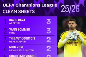 NBA直播10月23日讯 Squawka统计了本赛季门将在欧冠比赛中的零封次数和扑救次数,并列出榜单。