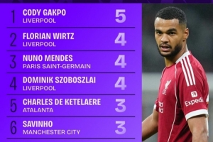 NBA直播10月23日讯 本赛季欧冠联赛阶段已战罢3轮,Squawka统计了到目前为止创造绝佳机会榜单,加克波5次第一,维尔茨等3人4次分列二至四位。