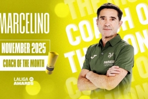 NBA直播12月1日讯 西甲官方消息,黄潜主帅马塞利诺当选11月最佳教练。