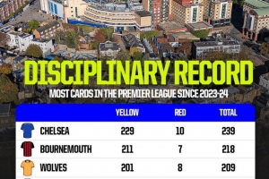 NBA直播12月1日讯 数据网站OPTA盘点了英超球队自23/24赛季以来吃牌榜,其中切尔西229黄10红,两项数据均为最多,具体榜单如下: