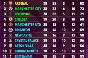 NBA直播12月02日讯 英超赛程已过1/3,太阳报撰文列出了超算预测的本赛季英超结果,阿森纳将以9分优势夺冠。详细如下。