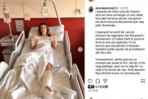NBA直播12月2日讯 邦马蒂在西班牙女足集训期间不幸遭遇腓骨骨折。巴萨官方宣布,邦马蒂已成功接受左腓骨经骨间隙骨折手术。邦马蒂刚刚更新社交媒,晒出手术后照片并发长文表示手术已顺利完成,自己将会重新归来。