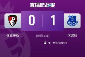 NBA直播12月03日讯 英超第14轮,伯恩茅斯主场0-1不敌埃弗顿,近5轮英超1平4负只拿了1分,排名猛跌。