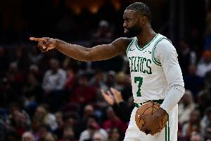 上半场,凯尔特人球星杰伦·布朗表现出色,尤其时次节轰下18分带队反超,在21分钟的时间里,投篮14中9,三分球4中1,罚球3中3,砍下22分2助攻1抢断的数据。