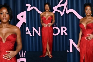 NBA直播12月3日讯 据《太阳报》报道,本周一晚上,在英国时尚大奖颁奖典礼上,萨卡的未婚妻托拉米·本森身穿一件低胸红裙,性感惊艳,以一身华丽造型在红毯上大放异彩。