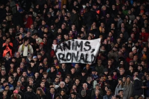 本场比赛,在诺坎普球场内出现了一条球迷专门为罗纳德·阿劳霍展示的横幅。该横幅上写着“请振作起来,罗纳德”。