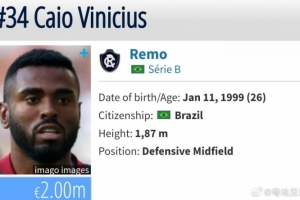NBA直播12月3日讯 据博主“粤地足球人”社媒透露,效力于巴乙瑞模贝雷的26岁中场球员卡奥·维尼修斯接近加盟某支西南地区的中超球队,该博主表示球员已抵达该球队所在的地级市。